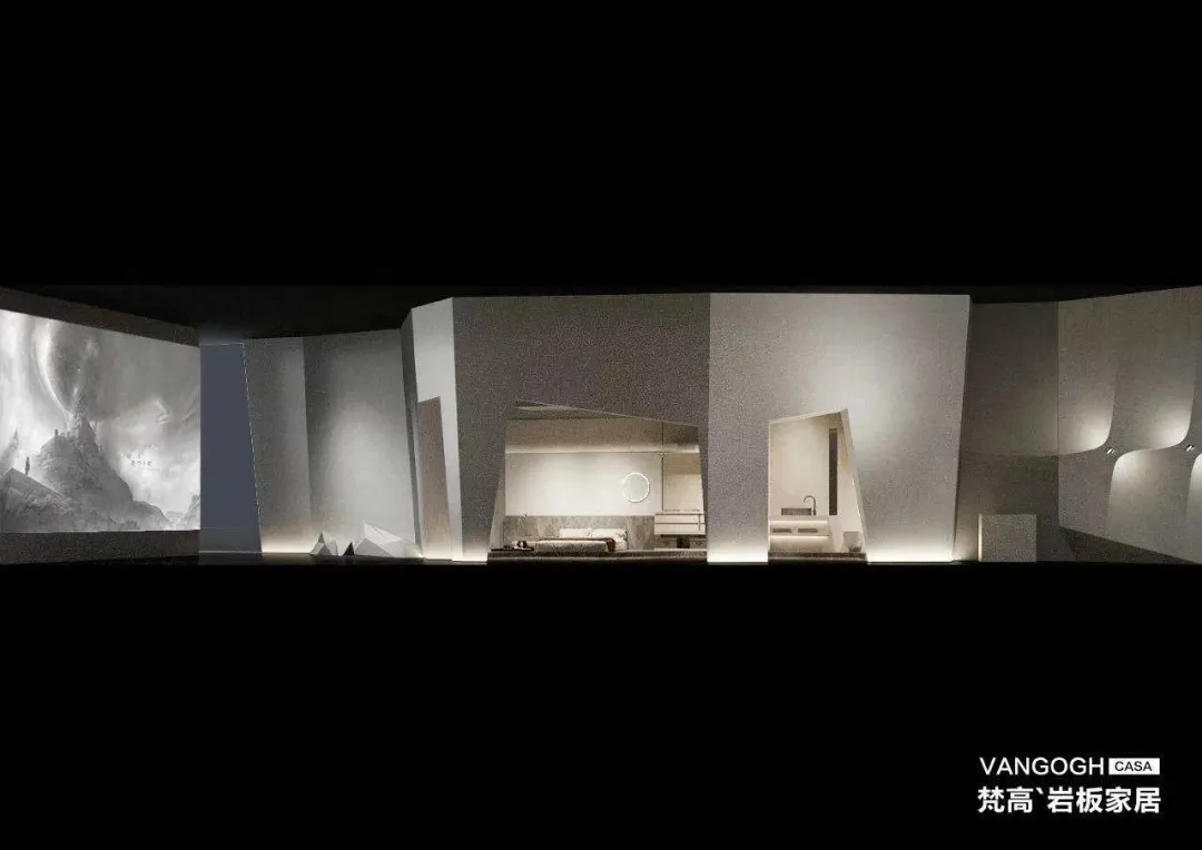 “好的空间”有很多种表现形式,但它们都有着【以人为本】的共同精神内核。通过【山水人居】,梵高将运用多元的表现手法,向观众们展示高级家居空间的【美学享受】,并传递梵高岩版产品的【合理性、适用性】,演绎出符合未来人居需求的【以人为本】精神。【旋、漾、谧、涤、憩】5大主题空间,多元化呈现【山水人居】生活体验。既有超大规格的【一片到顶】,也有【全案落地】的家居应用,带来更全面、更合理的岩板家居解决方案。序厅沉浸式三面立体投影,3D震撼效果,给你不容错过的视听享受。